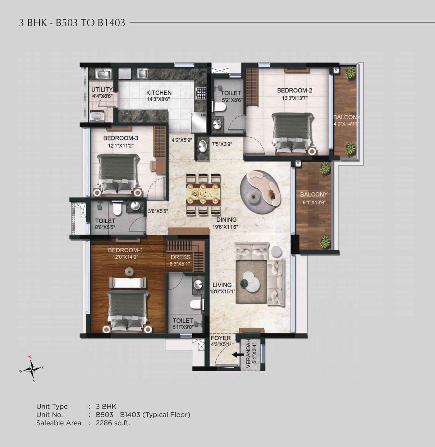 | 3 BHK | 2286 - 2319 Sq.Ft | ₹ 3.78 Cr* Onwards |