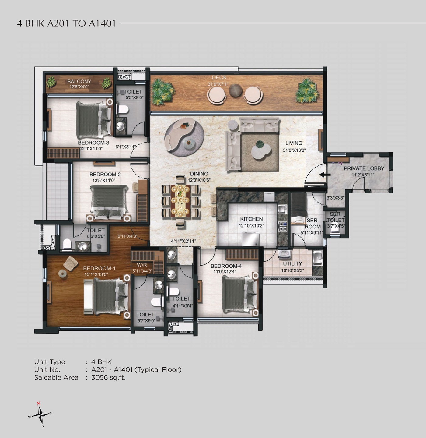 | 4 BHK | 3056 - 3064 Sq. Ft. | ₹ 5.02 Cr* Onwards |