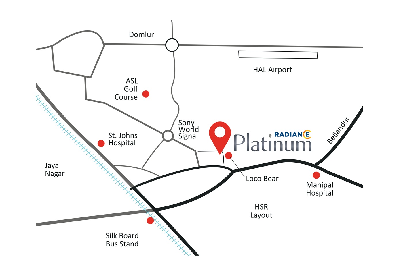 Sprawled over 1.24 acres stands Radiance Platinum, an Apartments Township with Luxury 3 & 4 Bedroom Apartments in Koramangala, for those who have found their space complete with the relaxed air and natural calm that comes with feeling utterly at home. Presenting the perfect home that truly makes you happy. A home built for the comfort and safety of your loved ones. A home that lets you enjoy long walks with family and build many more memorable moments together.